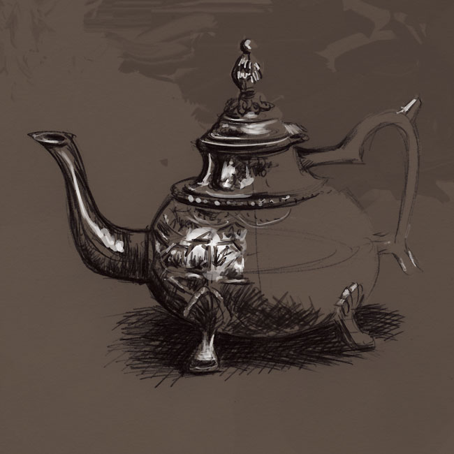 Une étude au crayon à bille, Couleur et rehauts de blancs sur Photoshop CS4.